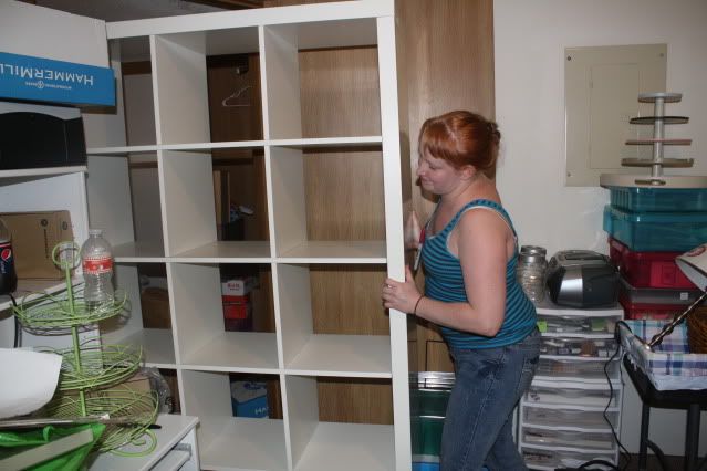 This is lynette pushing a HUGE shelf out of amber's craft room.